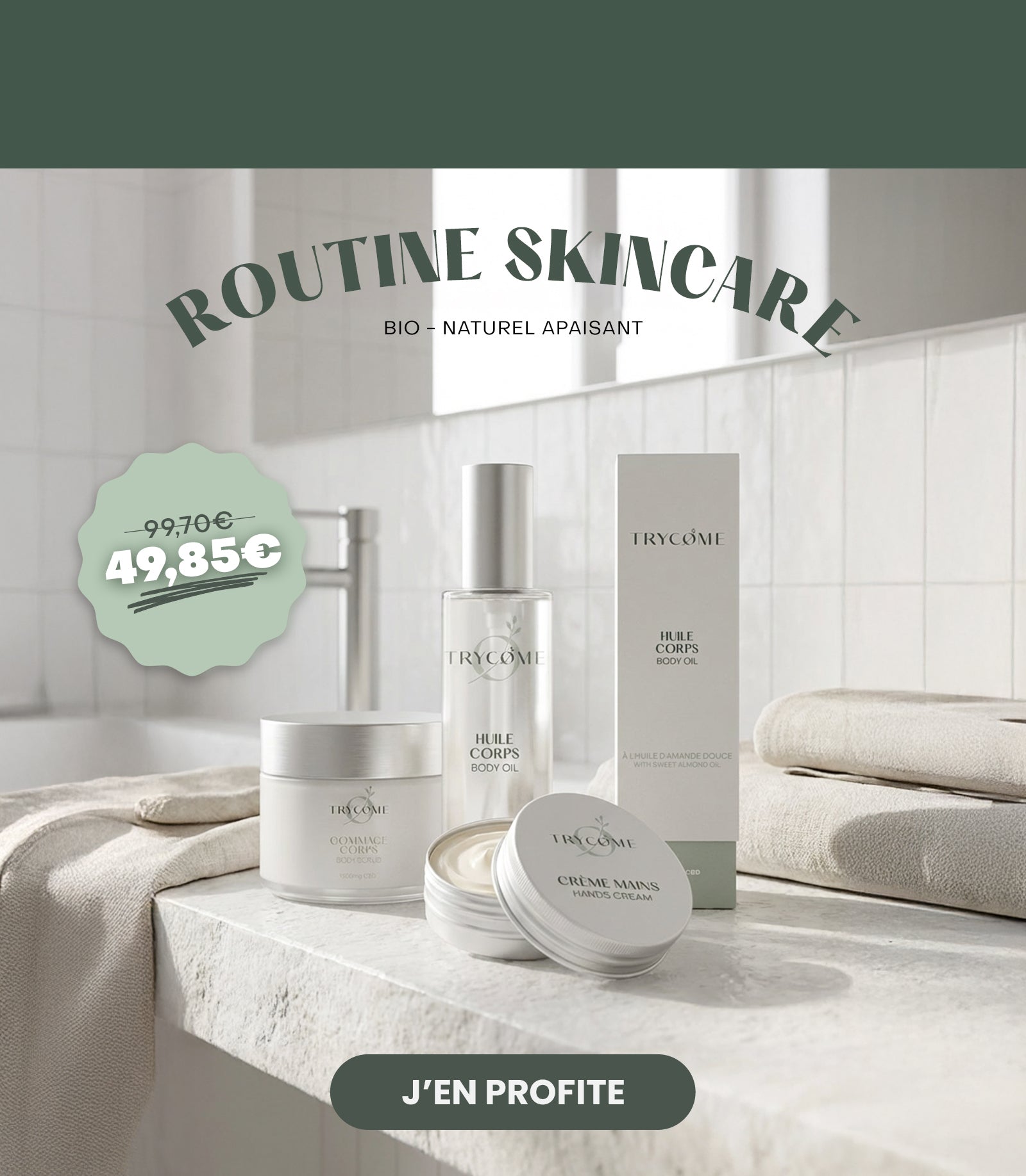 TRYCOME est née d’un besoin profond de revenir à l’essentiel : prendre soin de soi avec des gestes simples, sincères et respectueux.